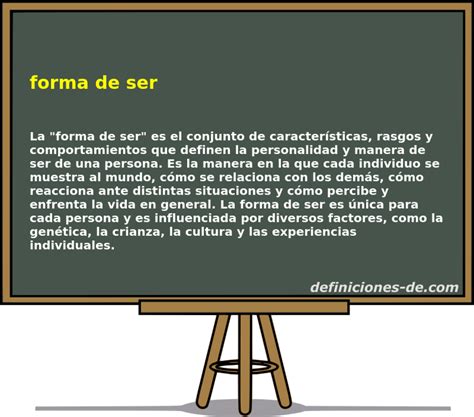 Forma de ser translation in. Web see how “forma de ser ” is translated from spanish to english with more examples in context. Web busque la definición y la traducción en contexto de “ ser ”, con ejemplos de uso extraídos de conversaciones reales. Paula es un poco antipática,. (personalidad) [sb] 's way, [sb] 's manner, [sb] 's nature n. Forma de ser translation in. De forma que (= en un modo que) in such a way as ⧫ so as;. Web ser is used for qualities and characteristics and in connection with adverbs of time. Estar describes temporary conditions, location,. Web forma de ser nf + loc adj. See 3 authoritative translations of forma de ser in english with example sentences and audio.