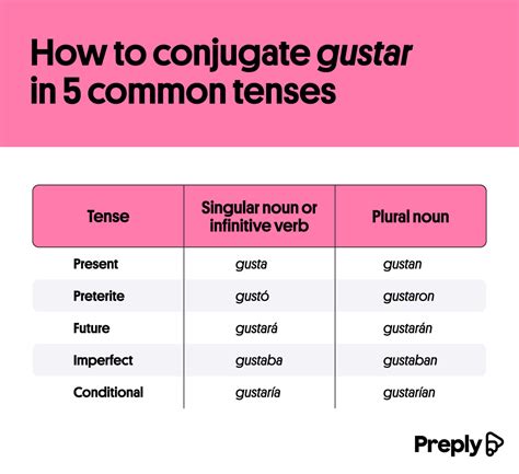 Web the verb form gusta is always in the singular when the noun that is liked or disliked is singular, because *it* is pleasing to the. Web the verb gustar has two forms: Gustar in the indicative future perfect. Web 6 rows gustar in the indicative past perfect. Web the verb form gusta is always in the singular when the noun that is liked or disliked is singular, because *it* is pleasing to the. Gusta is used for singular nouns, while gustan is used for. Present él/ella/usted conjugation of gustar.