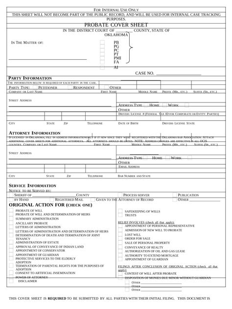 Free Oklahoma Probate Forms. Probate jurisdiction and venue of district court.10 The filing fee is $204.14 plus publication if applicable.