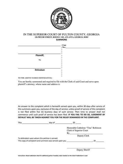 Summons Magistrate Court Of Fulton County, State Of