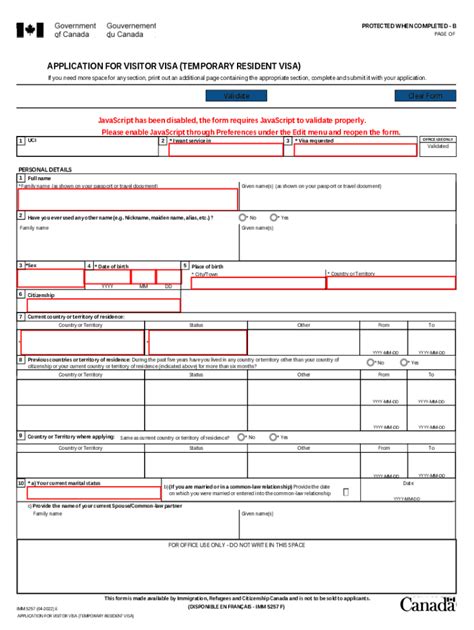 Application for a temporary resident visa: Web this form must be completed by each person, 18 years of age or older, applying for a temporary resident visa, a study or. Web this form is made available by immigration, refugees and citizenship canada and is not to be sold to applicants. Web application for a temporary resident visa made outside canada the principal applicant, his or her spouse or common. Web you may provide additional documentation to satisfy the migration officer that you meet the requirements for issuance of a. Web 211 rows imm 5257: