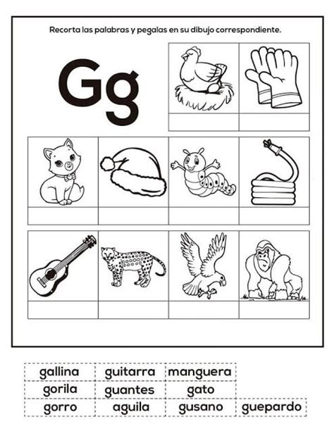 Palabras con G Que empiezan por la letra G para Niños