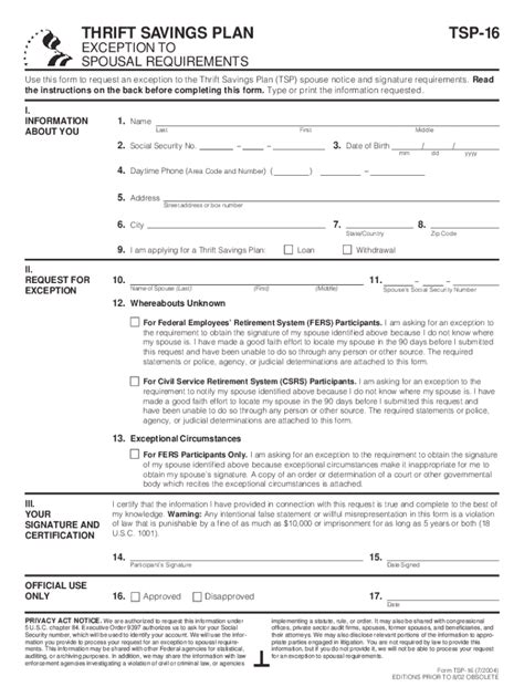 When you log in to my account,. Web these rules apply even if you are separated from your spouse. There are exceptions to these rights, but they are. Web to show the spouse's consent and waiver, a participant must submit to the tsp record keeper a properly completed. You can complete most tsp transactions entirely online. Web forms and resources. Web the participant may make a different total withdrawal election only if his or her spouse consents to that election and waives the.