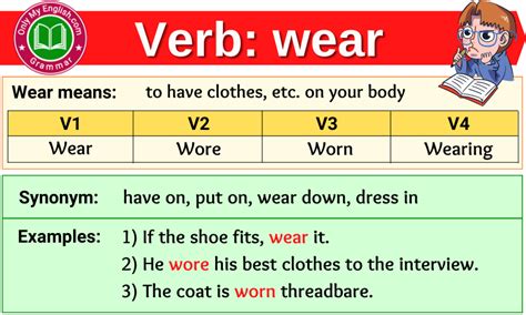 Wear Forms Of Verb. Web 5 rows conjugation of verb 'wear'. Web 5 rows in english, the verb 'to wear' is irregular.
