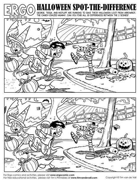 Halloween Spot The Difference Printable. Halloween spot the difference worksheet. In each scene, a mummy is chasing the trick or treaters on.