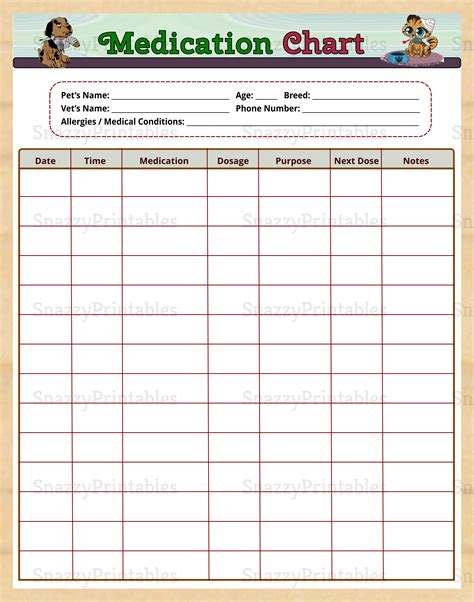 Printable Pet Medication Chart Printable Word Searches
