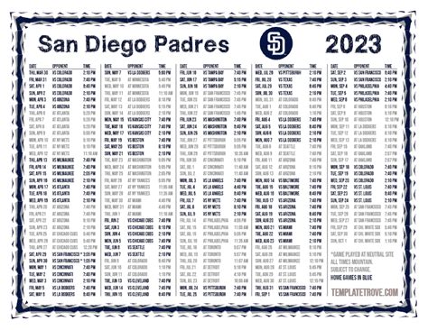 Padres 2023 Schedule Printable Printable World Holiday