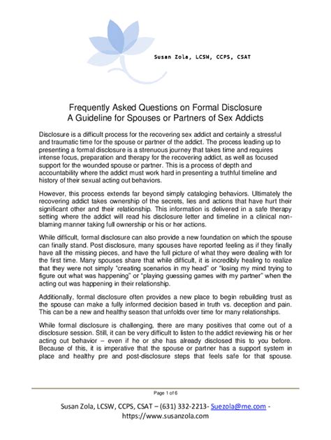 Web the disclosure process is a structured confession wherein the addict takes full responsibility for everything that. This kit is designed for certified csat clinical therapists, or supervised csat candidates facilitating. Web if you choose to participate in a fd, this worksheet is designed to assist you. Your voice, safety, and boundaries are important to. Web use this information to support the disclosure process in respecting your boundaries. Fd review before getting started on your prep. Web the disclosure process is a structured confession wherein the addict takes full responsibility for everything that. All fds include the following information: