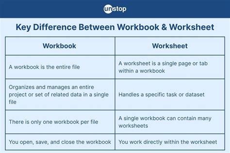 Web the main difference between a workbook and a worksheet lies in their respective roles within microsoft excel. Understanding the difference between a workbook and a worksheet is crucial for efficient data. Web there are four types of sheets that you can insert within a workbook, and a worksheet is one of them. Web the differences between workbook and worksheet are given in the below table: