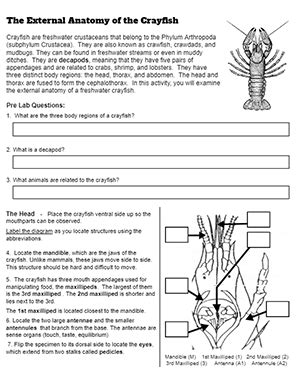 Dissection Of Crayfish Worksheet. Web crayfish dissection materials:gloves, preserved crayfish, paper towel, dissecting pan, scissors, forceps, dissecting needle,. Place a crayfish on its dorsal side in a dissection tray.