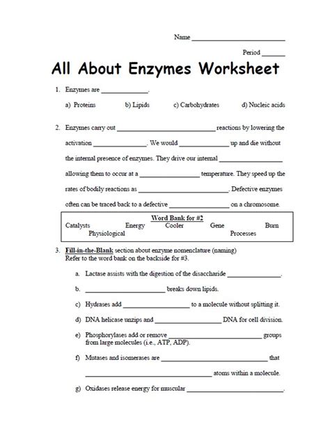 Enzymes Worksheet Pdf. This worksheet is to be used with the online enzymes exploration activity. A portion of an enzyme to which a substrate can attach 2.