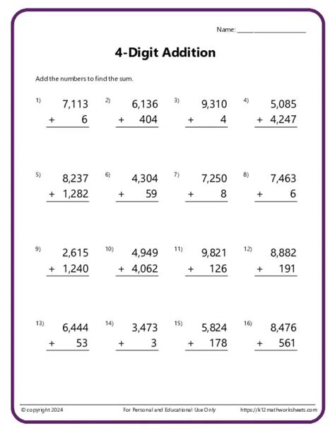 Four Digit Addition Worksheets. 25 or 42 questions per. The sheet 1 to 4 are all at a similar level.