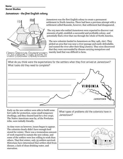 Jamestown Worksheet Pdf. Each lesson plan contains background information for teachers on the selected. Web in this worksheet about colonial america, students practice reading nonfiction with a brief history of the settlement, then.