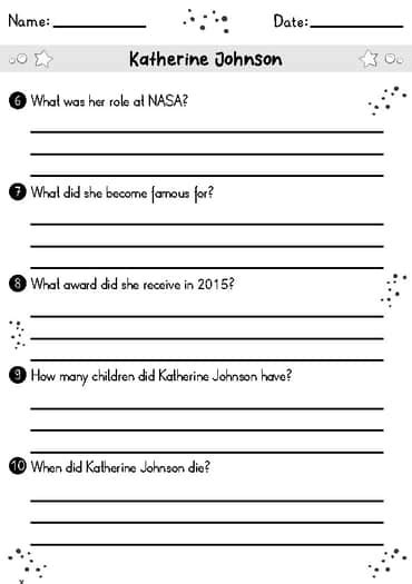 Unique & Free Katherine Johnson Worksheet Download Now Bingo Printables