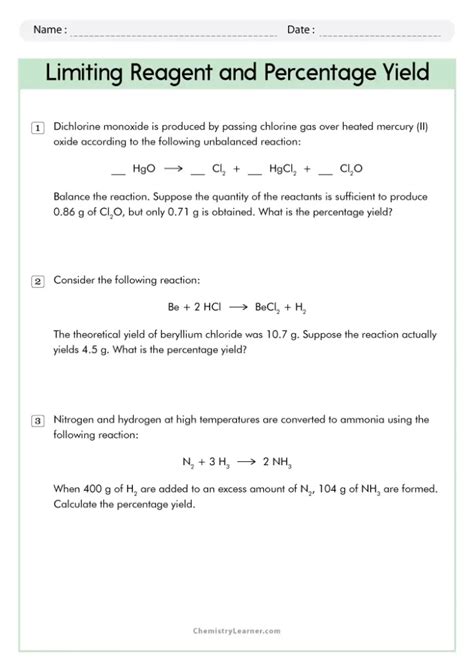 Quiz & Worksheet Calculating Reaction Yield and Percentage Yield from