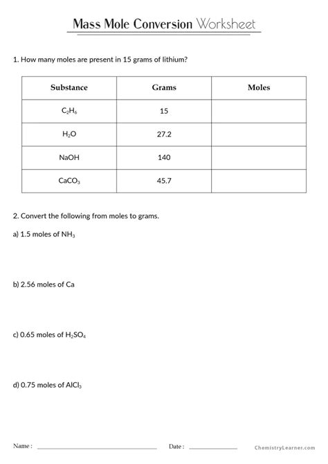Molar Conversion Worksheet. This worksheet asks students to do basic conversions of mass or. How many moles of \(nahco_3\) are in 27.5 g \(nahco_3\)?