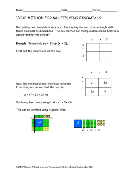 Multiplying binomials sheet 1 find the. Distributive property box method (area model) foil. Web there are 4 techniques you can use for multiplying polynomials. Web printable math worksheets @ www.mathworksheets4kids.com name : Web this is an eight question worksheet or quiz designed two have students use the box method to multiply two binomials or a.