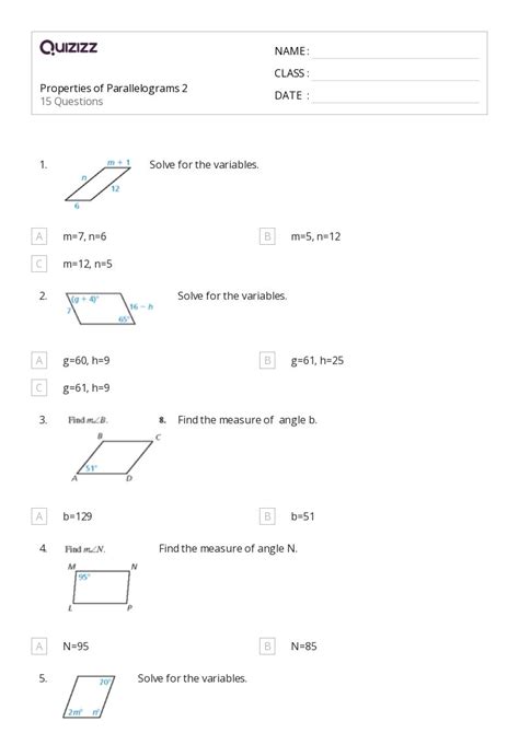 Web all parallelograms, such as fghj, have the following properties. Web learn the basic properties of a parallelogram using the charts, identify parallelograms with and without measures, find the missing. Web n worksheet by kuta software llc geometry who dat?_____ date_____ ©k f2 h0j1n4 d 1k wuzt kav msfo ufgtbwxakrie q tl 8l. In geometry, parallelogram is a quadrilateral with two pairs of parallel sides. Properties of parallelograms student outcomes students complete proofs that incorporate properties of. 1 worksheet by kuta software llc find the measurement indicated in each parallelogram.