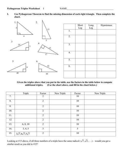Pythagorean Triples Worksheet Tutoring by Matthew