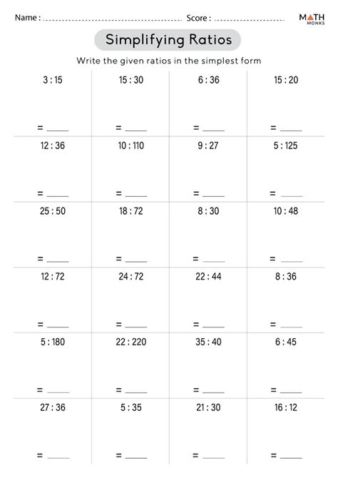 Simplifying Ratios worksheets