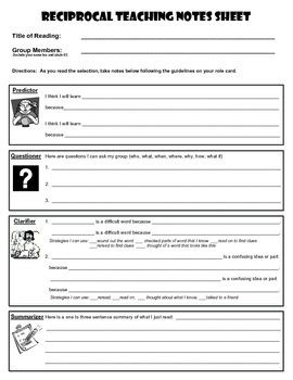 Reciprocal Teaching Worksheet / A Simplified Approach To Reciprocal