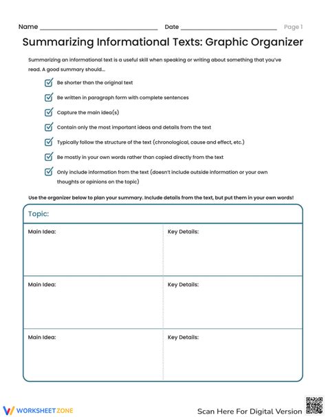 Summarizing Informational Text Worksheets. Graphic organizer worksheet use this simple organizer to help students track and. Here is a worksheet to help students practice summarizing.