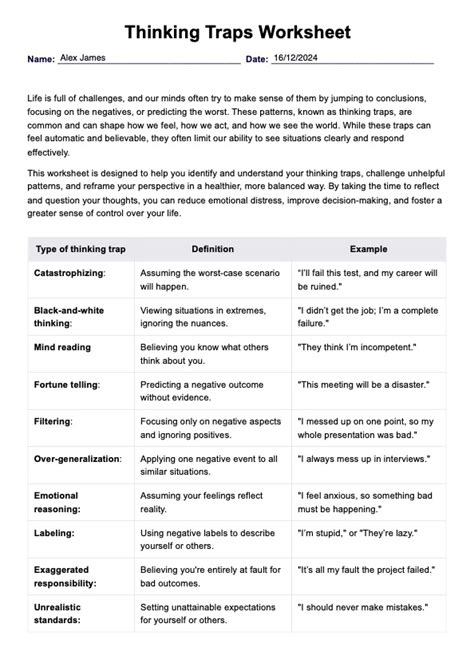Thinking Traps Worksheet Pdf. Jo t d o wn a n e x a. Using simple language and plenty of.