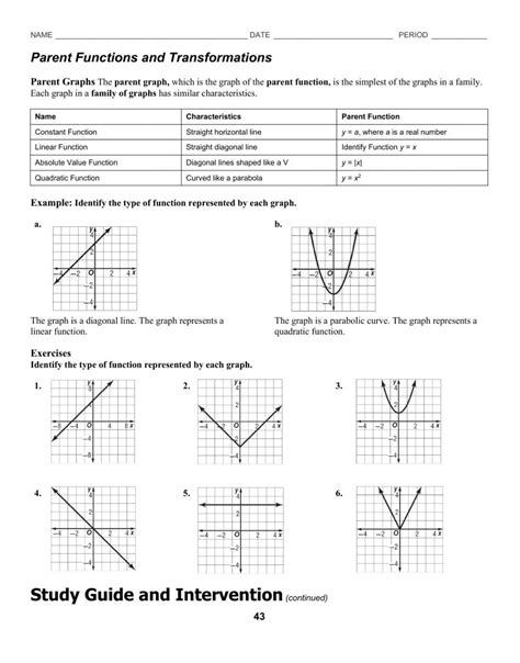 Web parent function worksheet #2. Web parent functions and transformations worksheet, word docs, & powerpoints. We can think graphs of absolute value and quadratic functions as transformations of the parent functions |x|. Below are graphs of parents functions used in.