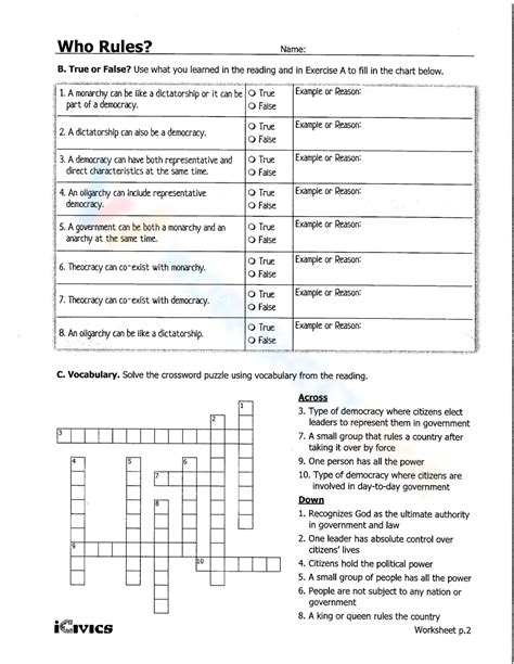 Students learn about the different forms of government that exist, including democracy, autocracy, oligarchy, and others. ** teacher guide ** a. Web view scope and sequence. Solve the crossword puzzle using vocabulary from the reading. Type of democracy where citizens elect. Identify the form(s) of government that each country has or had. Solve the crossword puzzle using vocabulary from.