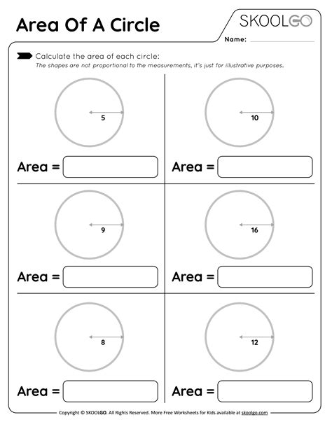 Mathematics worksheet Measure the area of circle 1