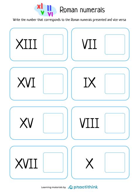 Printable Roman Numerals Worksheet for Kids