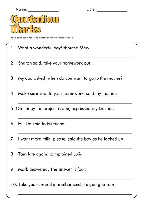 Students identify dialogue and add quotation marks to set what was said off from the rest of the. Web practice perfect punctuation with this quotation mark worksheet that teaches the finer points of quotation mark usage, like. Web the worksheets that you will find here present a series of sentences, some of which should not have quotation marks and. Web quotation marks worksheets are an essential tool in teaching students the fundamentals of punctuation, and specifically focus on how.